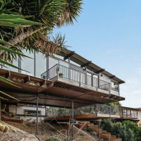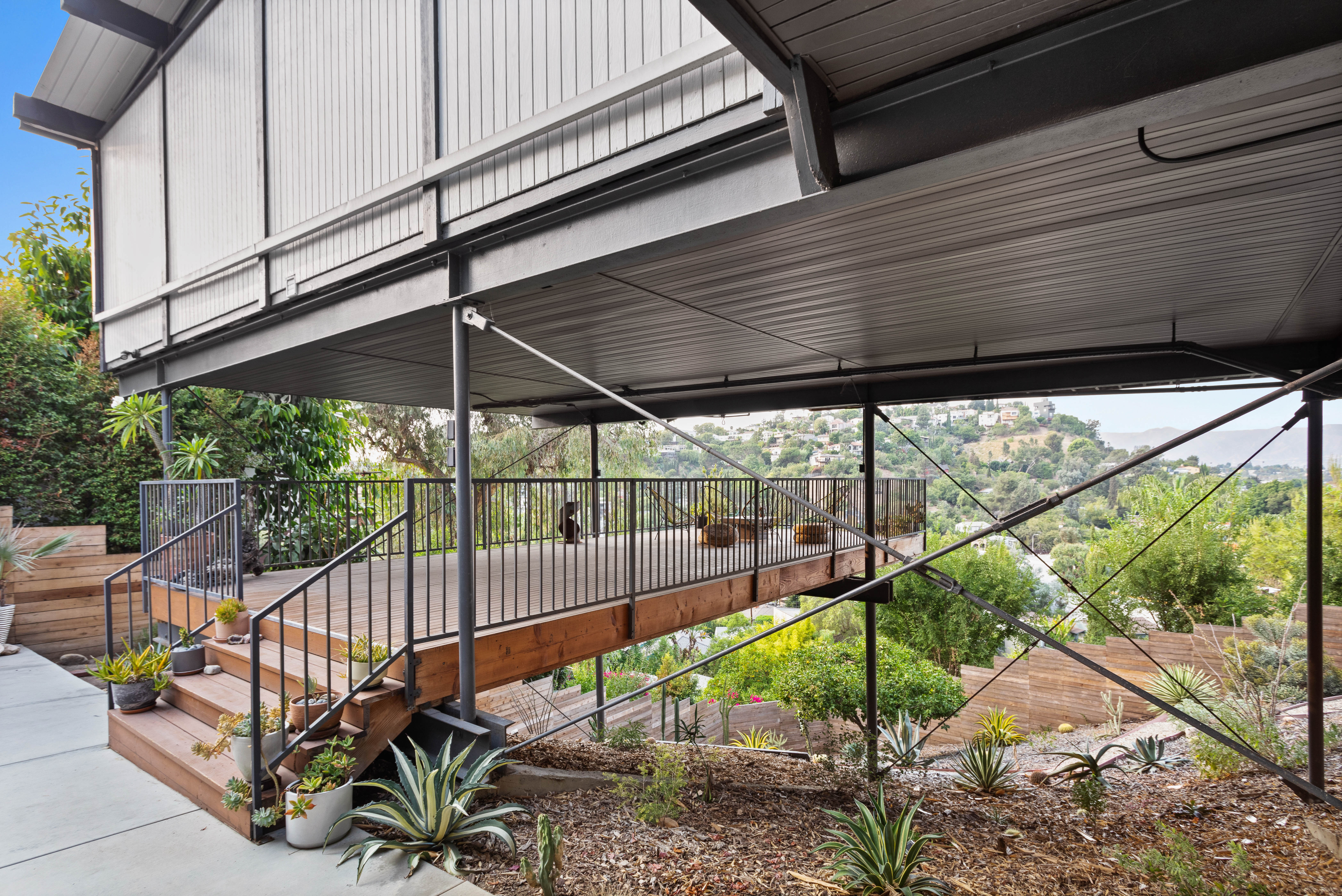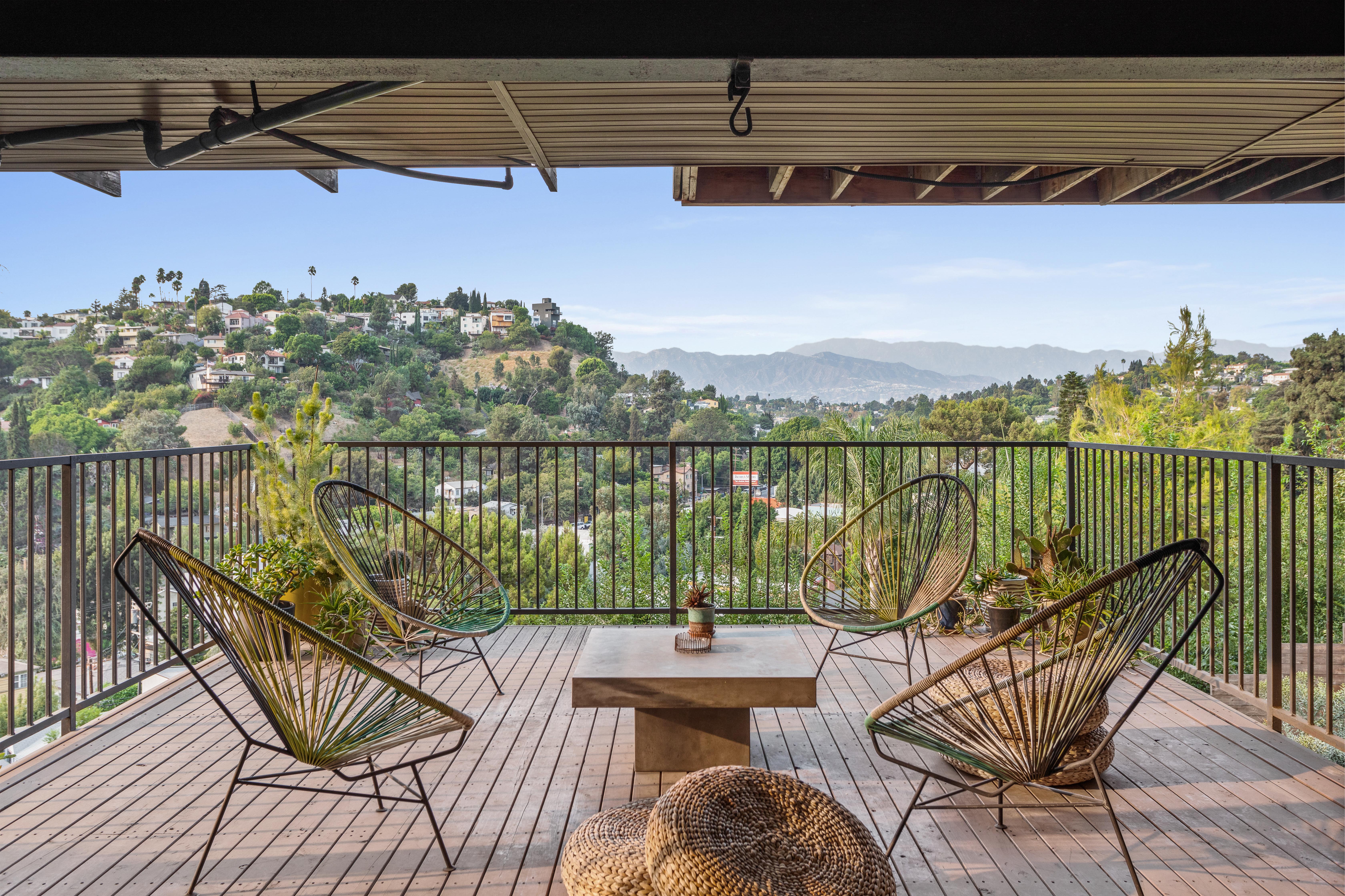At approximately 2,300 square feet, the home boasts 4 bedrooms and 3 bathrooms with a downstairs guest space. One of the first houses built on the block, it comes with stunning views of the Franklin Hills and San Gabriel Mountains.